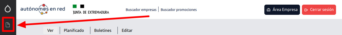 Una vez logueado nos encontramos en la página de presentación de la empresa. Verá el icono para entrar en la zona de administración en la esquina superior izquierda de la pagina. Pulse sobre el para continuar con las indicaciones: