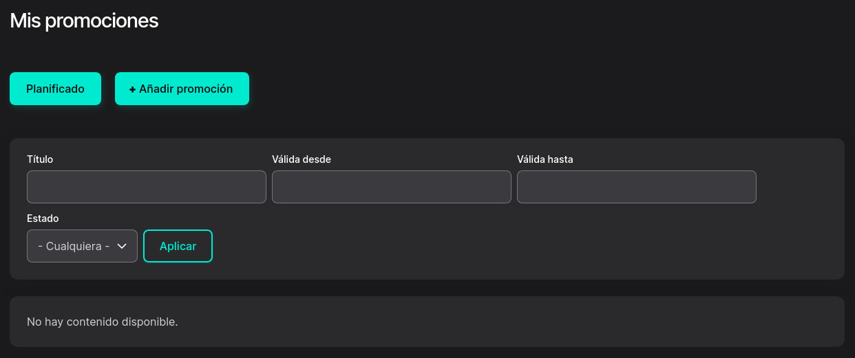 Para añadir una nueva promoción pulse el botón "+ Añadir promoción".