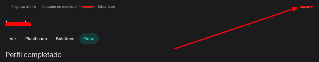Una vez dentro de la zona de administración verá el icono y su nombre de usuario en la esquina superior derecha de la pagina: