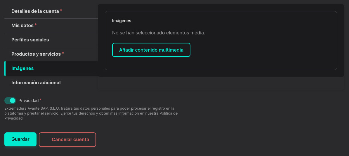 En la quinta pestaña "Imágenes" podrás actualizar tu galería de imágenes.