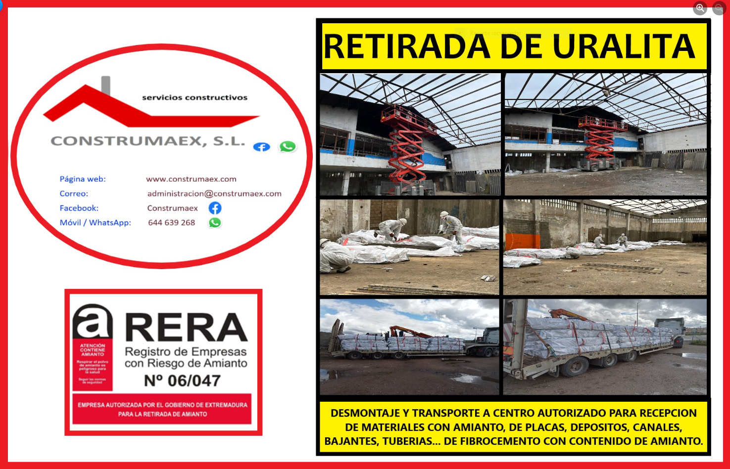 SOMOS UNA EMPRESA ESPECIALIZADA EN LA RETIRADA DE AMIANTO. RETIRAMOS MATERIALES DE CONSTRUCCION CON AMIANTO, Y URALITA, PLACAS, BAJANTES, DEPOSITOS TUBERIAS...
