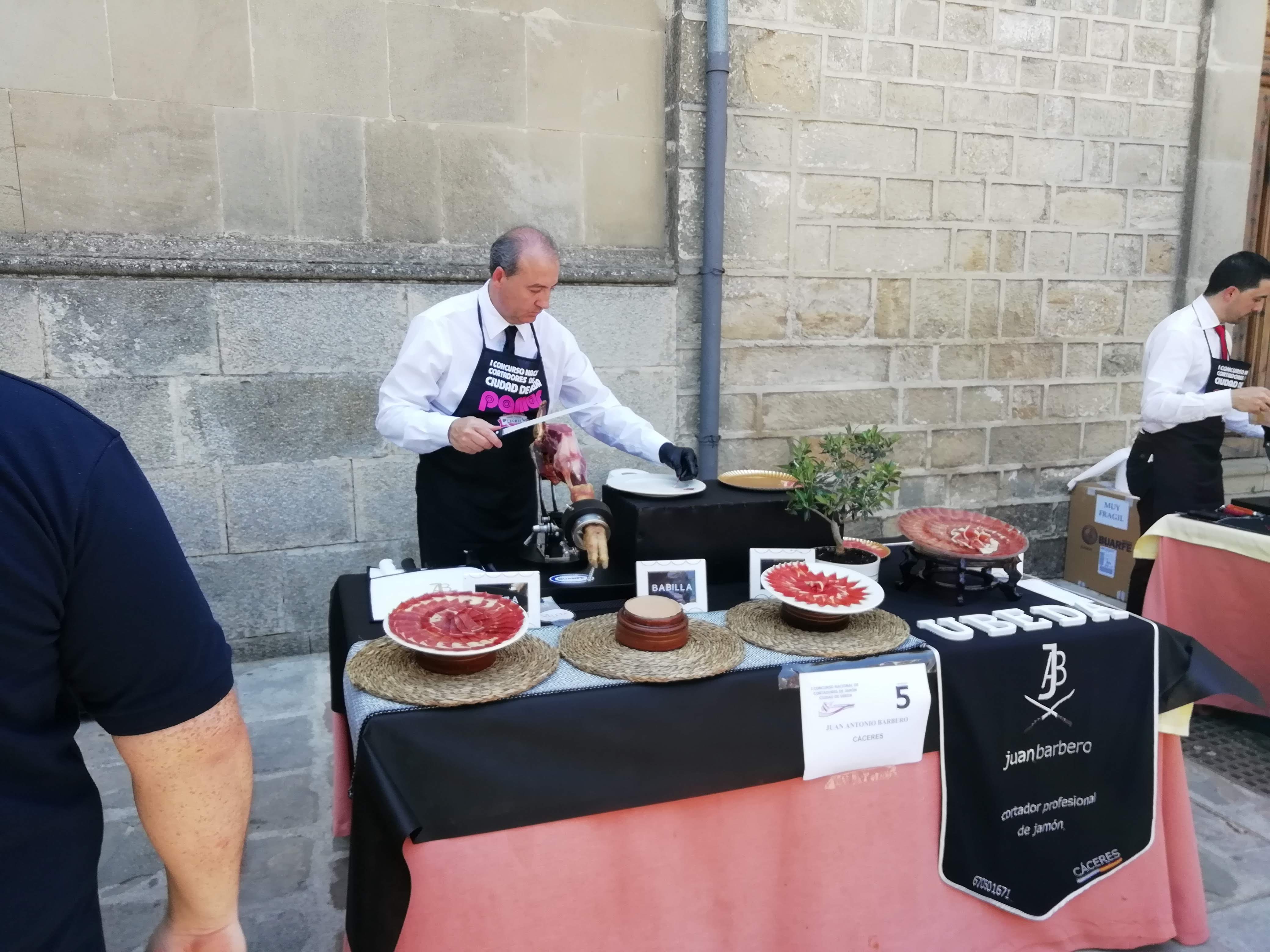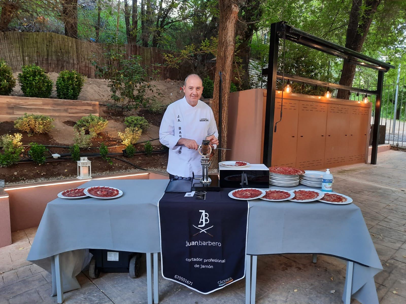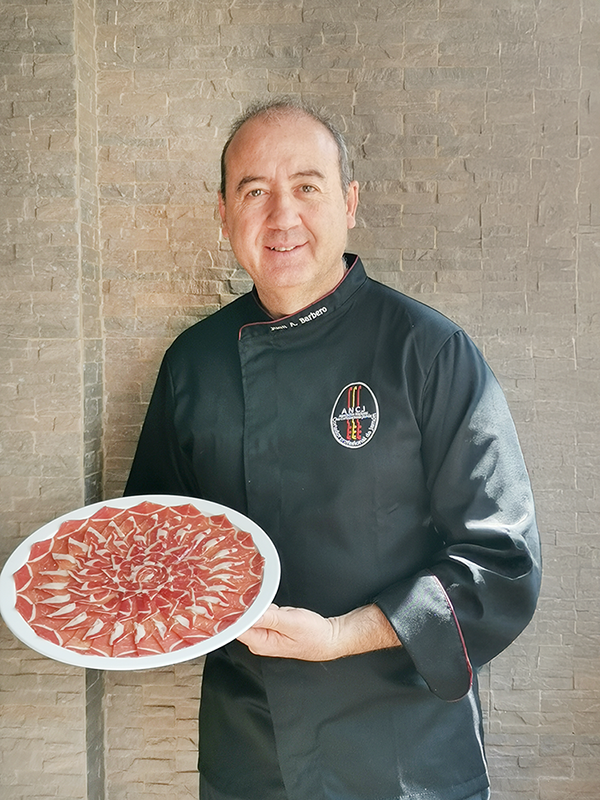 Soy Juan Antonio Barbero Peral, cortador profesional de jamón con casi 40 años de experiencia en el sector de la hostelería. A lo largo de mi trayectoria he perfeccionado el arte del corte, participando en numerosos eventos y obteniendo más de 50 premios en concursos nacionales.
