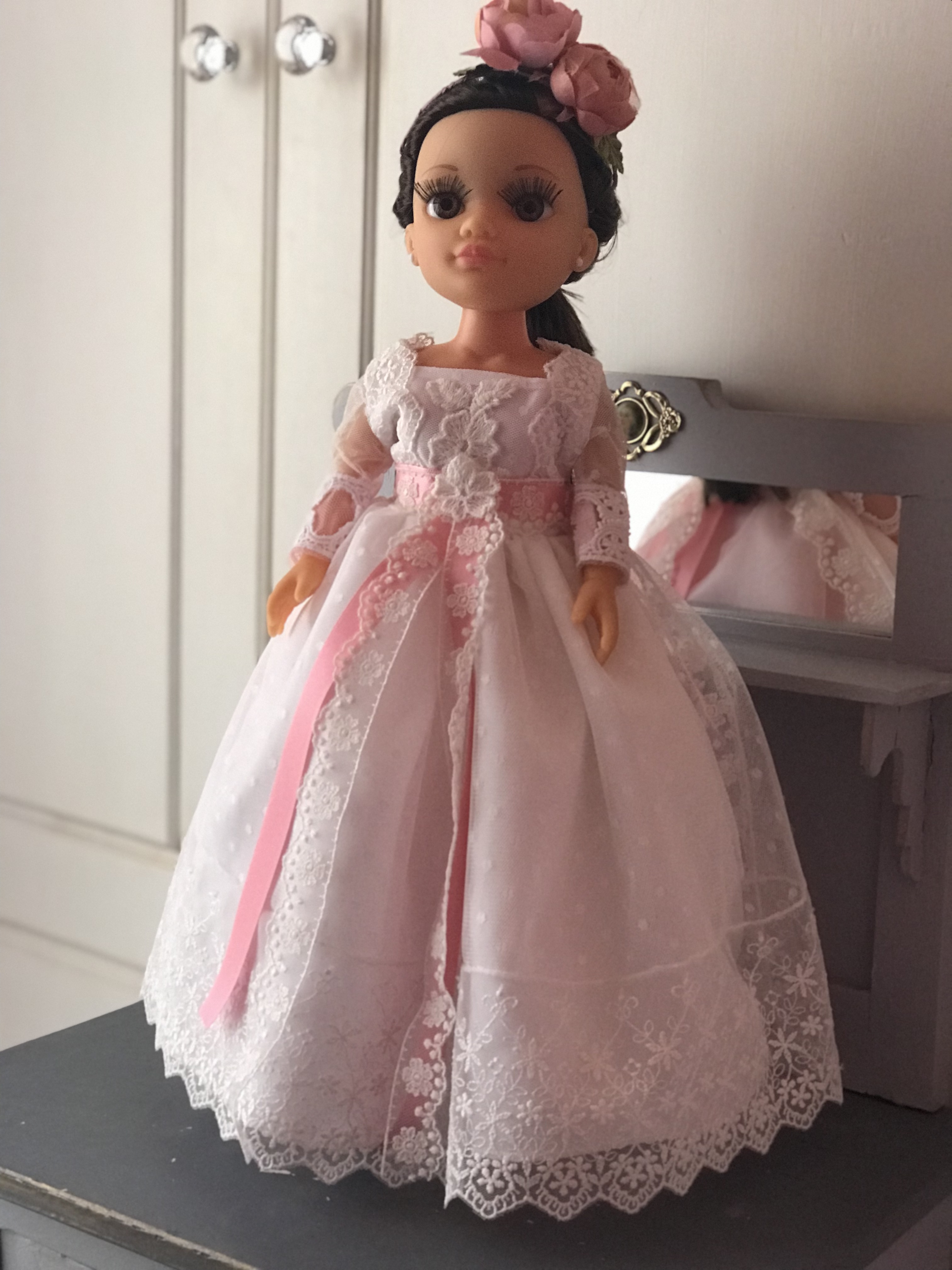 Elaboramos los regalos y complementos perfectos para las Comuniones y ceremonias de las princesas y principes de Casa , como muñecas Nancy personalizadas con su vestido y complementos de comunión, zapatillas , tocados, pulsera , limosnera . Hacemos que todo esté perfecto para su gran día.
